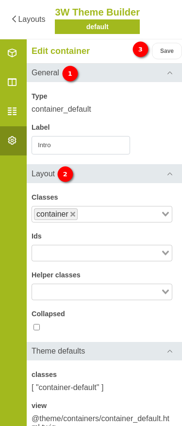- Layout block config options (classes, ids, ..)